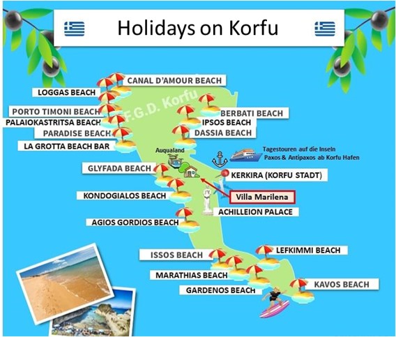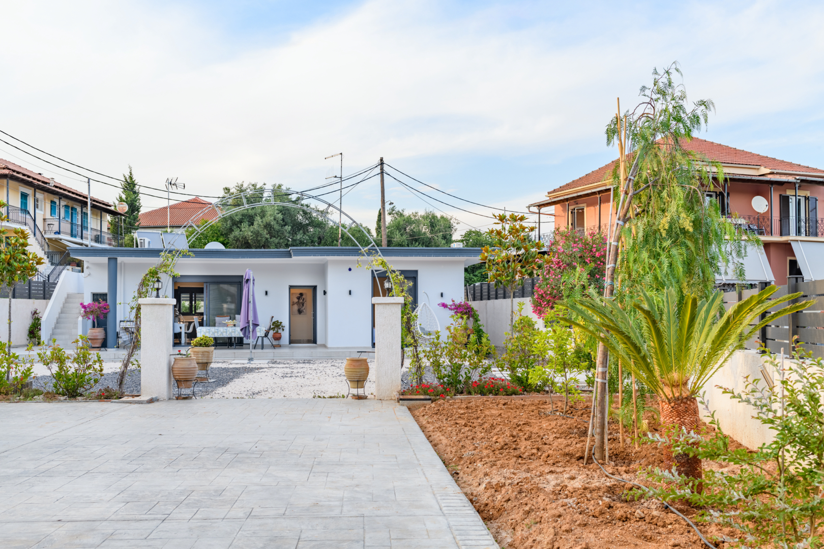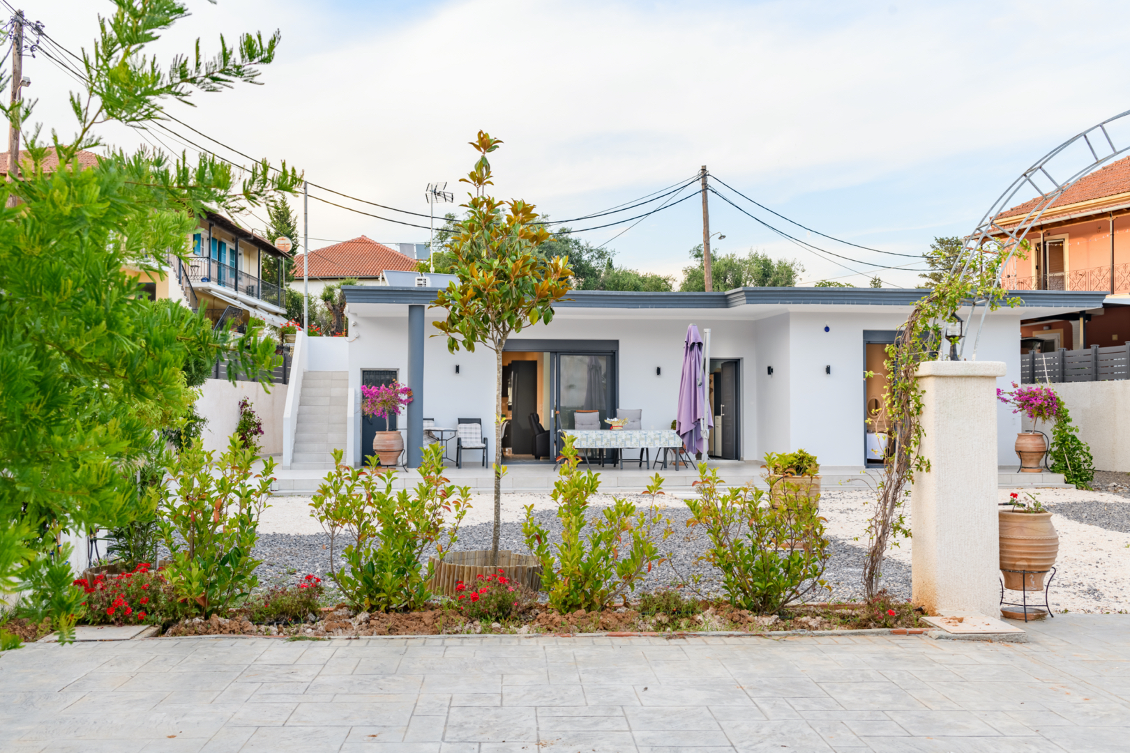 The Villa Marilena in Corfu has a 700 sqm garden and is located 10 Min. of Korfu city & Airport and 15 Min to different beaches. During your stay, the entire house and garden are available for your sole use. The house has a fully equipped kitchen, 3 bedrooms with independent air conditioning, a dining area and a living room with TV. It also includes 2 bathrooms and offers the capacity for max. 8 people. The garden has an outdoor shower to take a shower off the beach and a grill with an outdoor dining area. There is also private parking on the property. The entire property is provided with a privacy screen and is only accessible via a lockable gate, which protects your privacy on site.