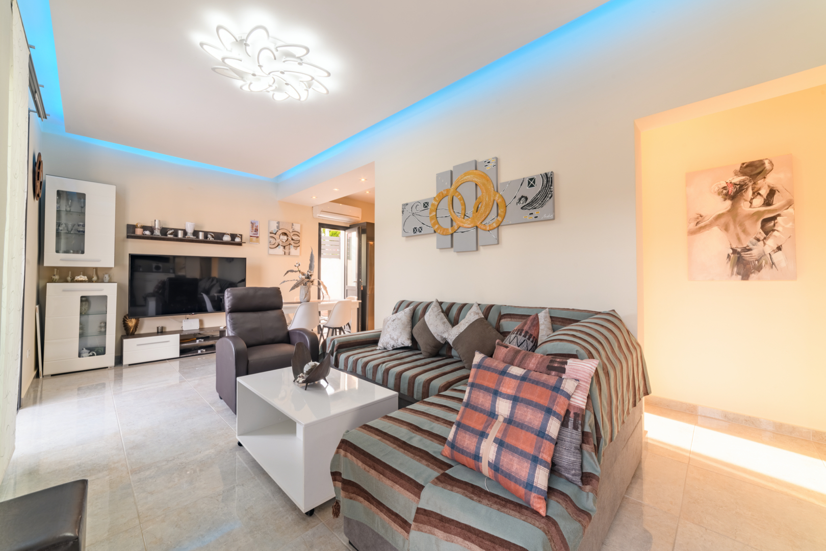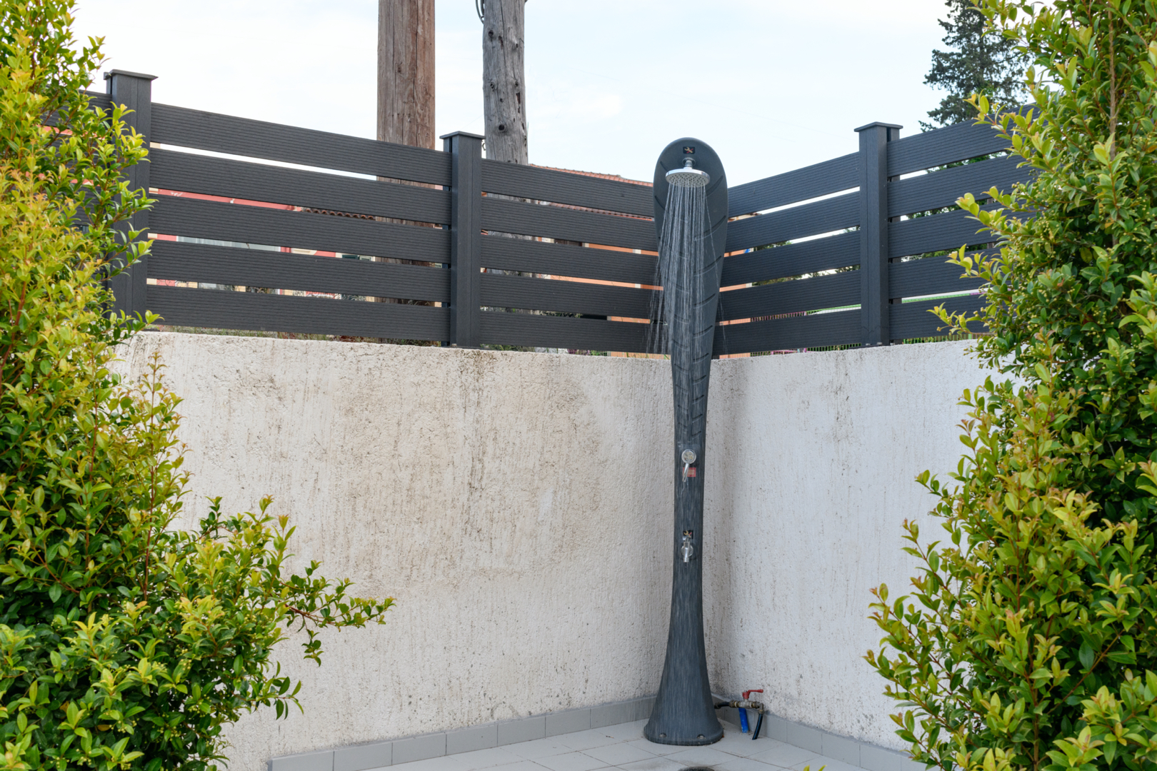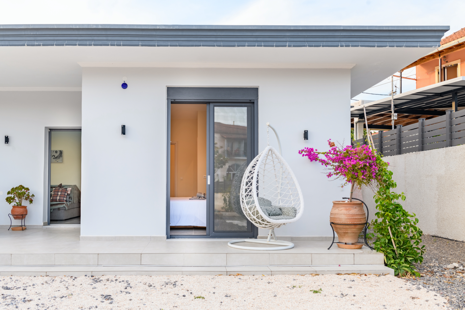 The Villa Marilena in Corfu has a 700 sqm garden and is located 10 Min. of Korfu city & Airport and 15 Min to different beaches. During your stay, the entire house and garden are available for your sole use. The house has a fully equipped kitchen, 3 bedrooms with independent air conditioning, a dining area and a living room with TV. It also includes 2 bathrooms and offers the capacity for max. 8 people. The garden has an outdoor shower to take a shower off the beach and a grill with an outdoor dining area. There is also private parking on the property. The entire property is provided with a privacy screen and is only accessible via a lockable gate, which protects your privacy on site.